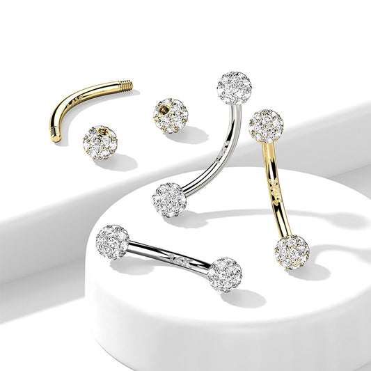 14 Karat Gold Curved Barbell 16 Gauge Eyebrow Ring With Gem Paved Ball