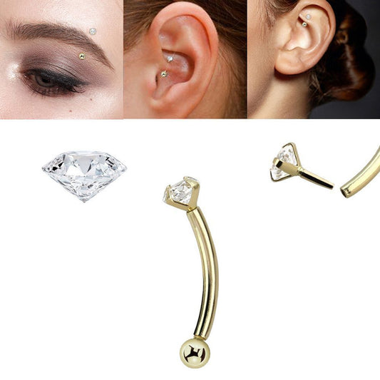14 Karat Gold Curved Barbell 16 Gauge Eyebrow Ring & Real Diamond