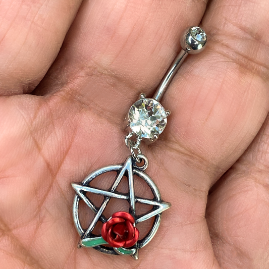 Surgical Steel Belly Button Ring 14 Gauge With Gem & Flower Pentacle