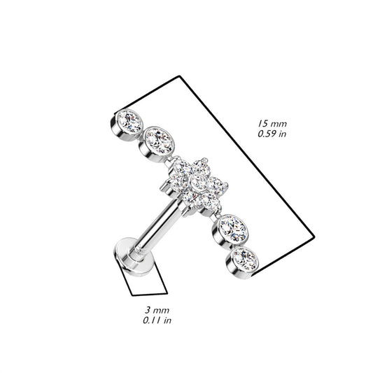 14 Karat Gold Cartilage Labret Stud 18 & 16 Gauge - CZ Flower Climber