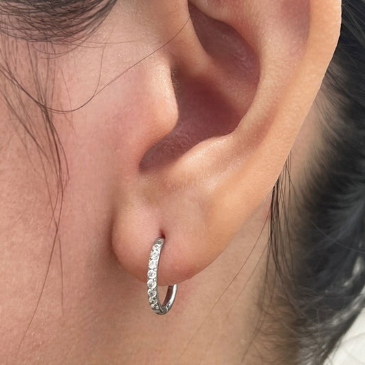 Surgical Steel Hinged Hoop Earrings 20 Gauge With CZ Paved Gems - Pair