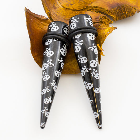 Acrylic Straight Tapers Plug Ear 6 to 000 Gauge Skull Cross - Pair