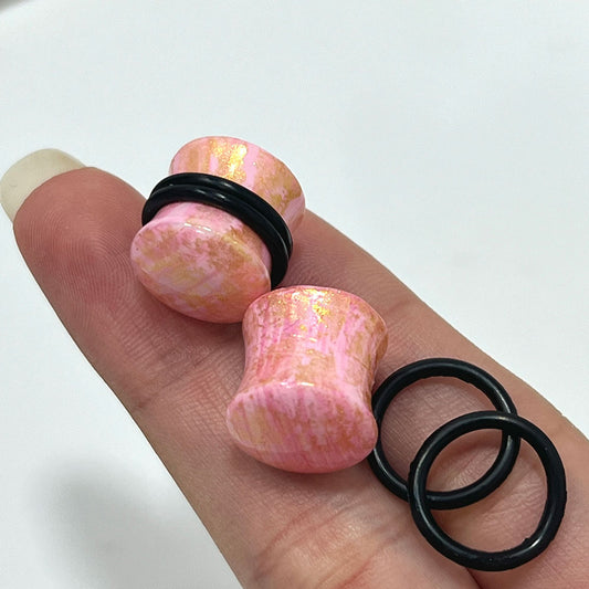 Rose Quartz Glitter Resin Double Flared Plug 6 to 13/16" Gauge - Pair