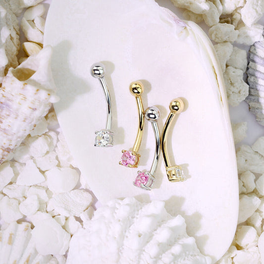 Surgical Steel Navel Belly Button Ring Curved Barbell 14 Gauge & Gems