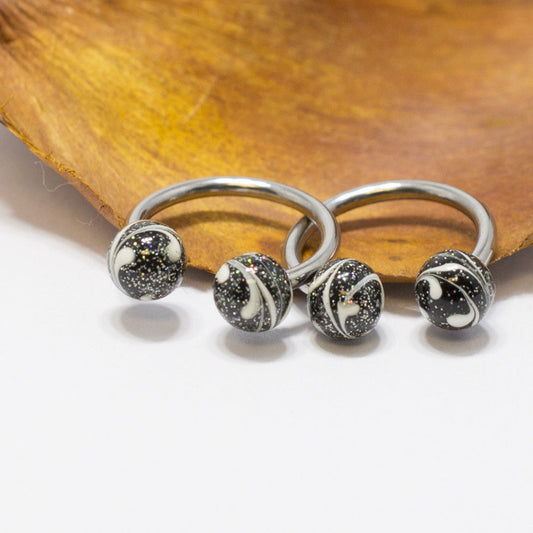 Surgical Steel Horseshoe Circular Barbell Ring 16 Gauge Swirl - 2 Pack