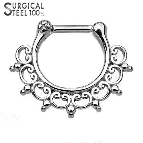 Surgical Steel Hinged Septum Clicker Ring 16 Gauge & Lace Tribal Fan