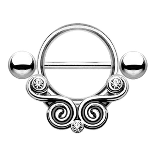 Surgical Steel Nipple Ring Barbell Shield 14 Gauge & Gem Lace Swirls