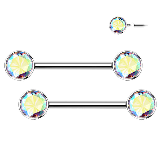 Surgical Steel Nipple Ring Barbell 14 Gauge Internally Threaded CZ Gem