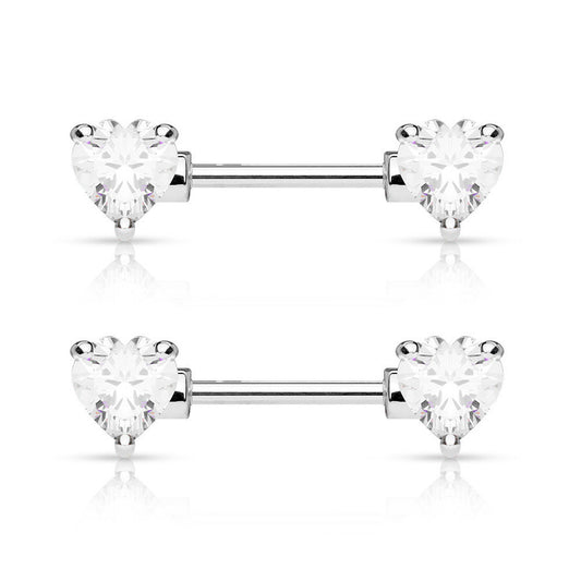 Surgical Steel Nipple Ring Barbell 14 Gauge with Heart Shaped CZ Gem