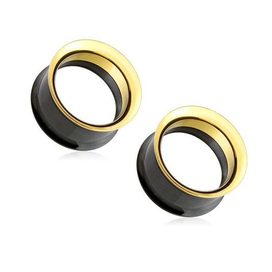 Double Flared Black Gold Screw Fit Plug Ear Tunnel 8 to 1" Gauge - Set