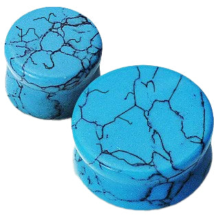 Double Flare Plug Ear Tunnel 6 to 5/8" Gauge & Turquoise Stone - Pair