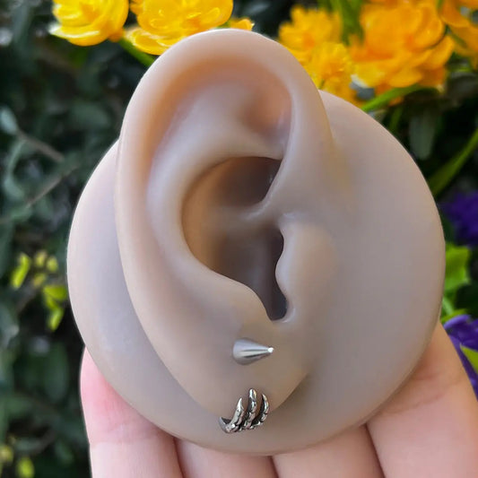 Surgical Steel Barbell Earring 16 Gauge With Spike & Dragon Claw Cuff
