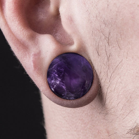 Single Flared Plug Ear Tunnel 6 to 5/8" Gauge & Amethyst Stone - Pair