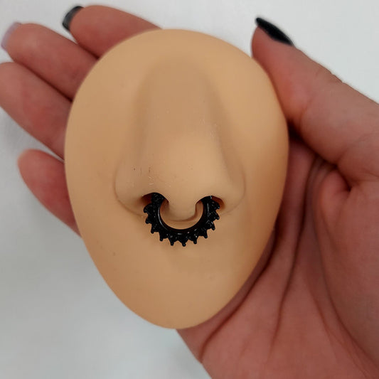 Surgical Steel Black Hinged Segment Septum Ring 16 Gauge With CZ Gems