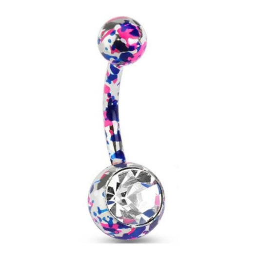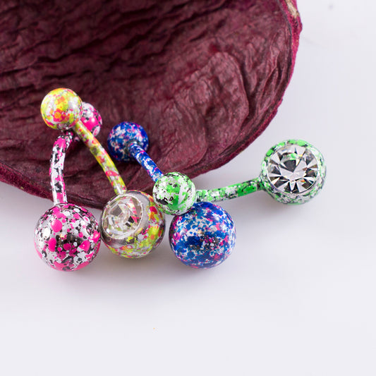 Surgical Steel Belly Button Ring 14 Gauge With Paint Splatter - 2 Pack