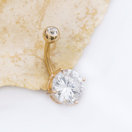 Surgical Steel Belly Ring 14 Gauge Internally Threaded & Clear CZ Gems