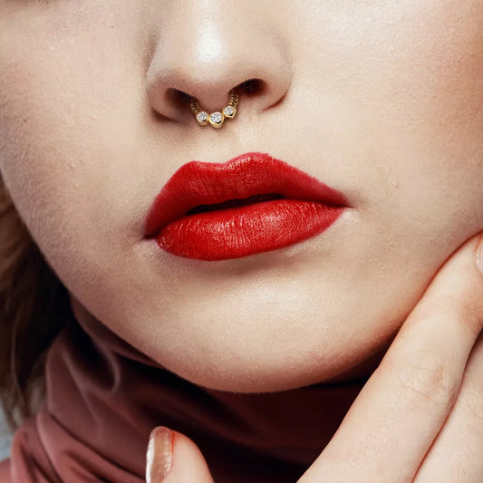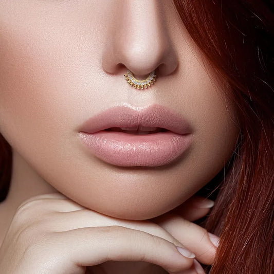 Surgical Steel Bendable Hoop Septum Ring 16 Gauge with Fan CZ Gems