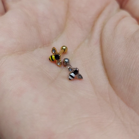 Surgical Steel Cartilage Straight Barbell Ring 16 Gauge 1/4" With Bee