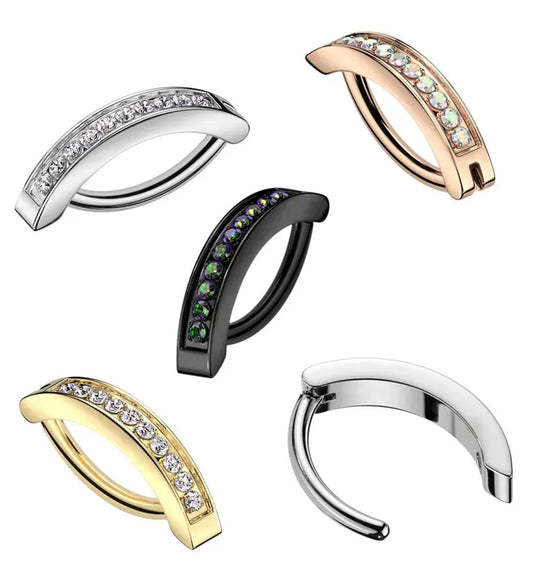 Titanium Belly Ring Hinged Hoop Clicker 14 Gauge with CNC Set CZ Gems