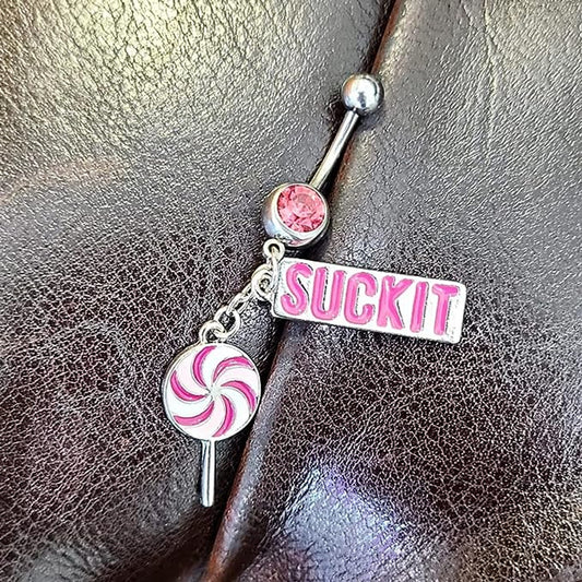 Surgical Steel Belly Button Ring 14 Gauge With Lollipop Suck It Charm