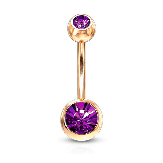 Surgical Steel Belly Ring 14 Gauge Rose Gold IP With Double CZ Gems