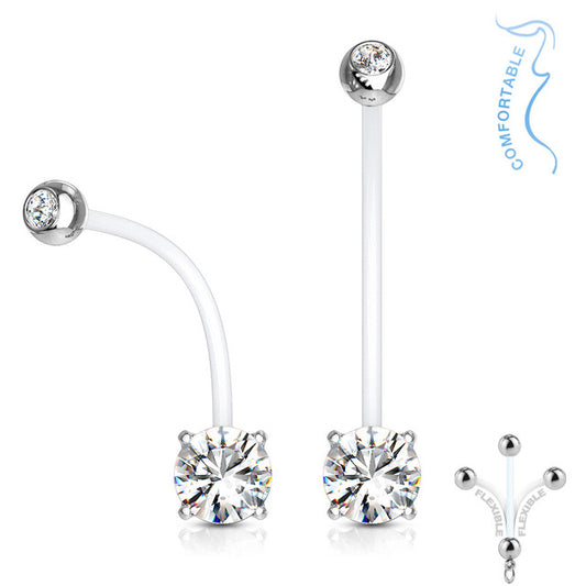 Bio-Flex Long Pregnancy Belly Ring 14 Gauge 1" (25 MM) & CZ Gem