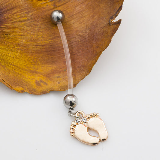 Bio-Flex Long Pregnancy Belly Ring 14 Gauge 1" (25 MM) & Cute Feet