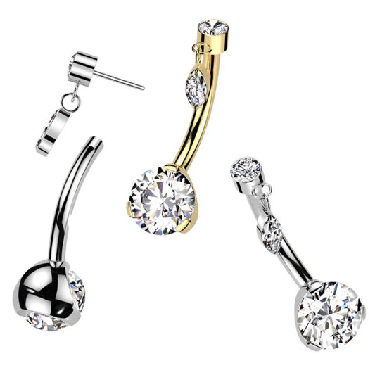 Titanium Belly Ring 14 Gauge 3/8" (10 MM) Threadless & Dangle Top CZ