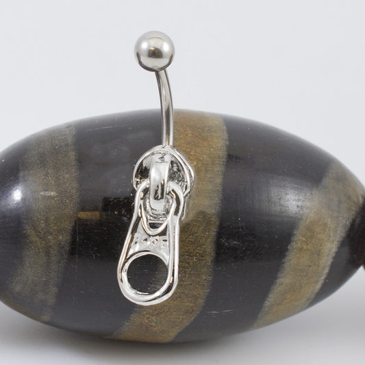 Surgical Steel Belly Button Ring 14 Gauge 3/8" (10 MM) Zipper Charm
