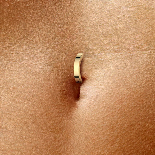14 Karat Solid Gold Belly Ring 14 Gauge & Double CZ Gems