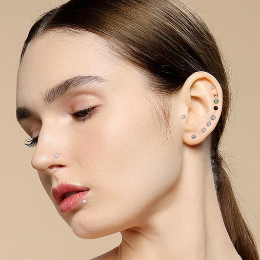 Surgical Steel Threadless Push-In Labret / Monroe Stud 16 Gauge With CZ Gem