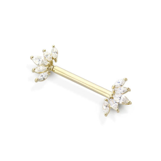 14 Karat Solid Gold Nipple Ring Barbell 14 Gauge & Threadless Fan CZ