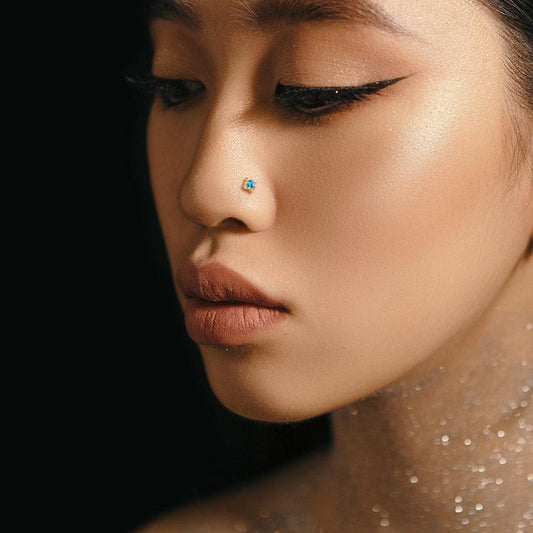 14 Karat Solid Gold Nose Stud Ring 20 Gauge 1/4" Bone & Prong Set Gem