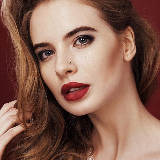 14 Karat White Gold Nose Ring Stud 20 Gauge 1/4" L Bend Heart Red Gem