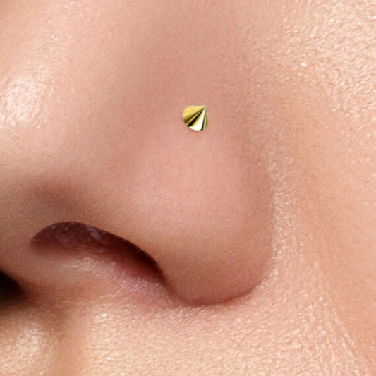 14 Karat Solid Gold Nose Stud Ring 20 Gauge 1/4" Bone & Spike Cone Top