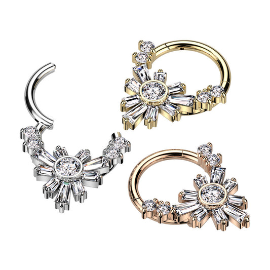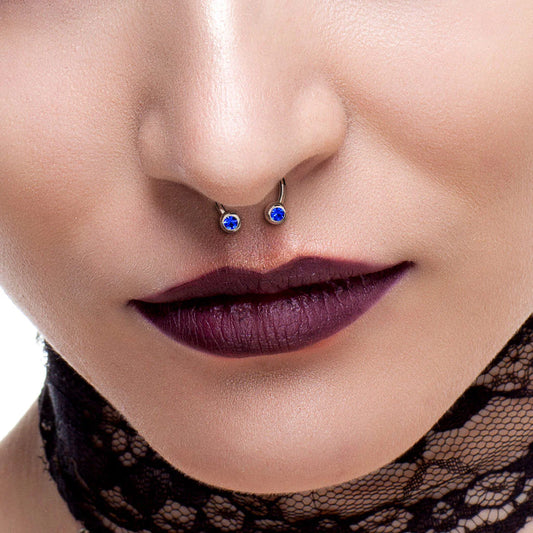 Unleash your self-expression with the septum piercing, a truly unique canvas for artistic exploration. Dive into a world of possibilities with an array of gems, colors, and designs at your fingertips. Our collection offers a diverse range of sizes and materials, including bone, glass, 14kt gold, horn, niobium, stainless steel, stone, titanium, and wood. Let your confidence and creativity shine as you browse through our selection of beautifully crafted rings and clickers, available in sizes ranging from 16G to 00G, and find the perfect stunning adornment for your septum piercing.