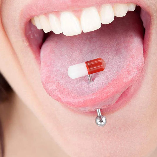 Surgical Steel Tongue Ring Straight Barbell 14 Gauge with Pill Design