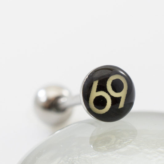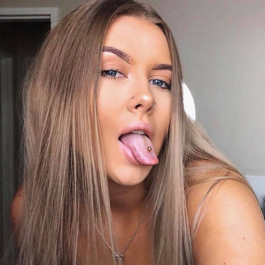 Surgical Steel Tongue Ring Straight Barbell 14 Gauge & Naughty Logos
