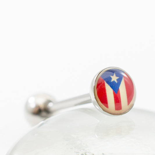 Surgical Steel Tongue Ring Straight Barbell 14 Gauge Puerto Rican Flag