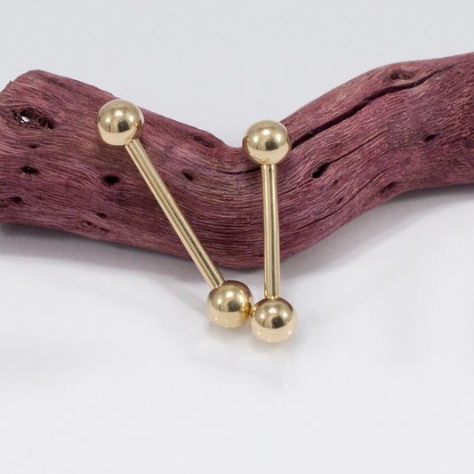 14 Karat Solid Gold Nipple Ring Straight Barbell 14 Gauge - Pair