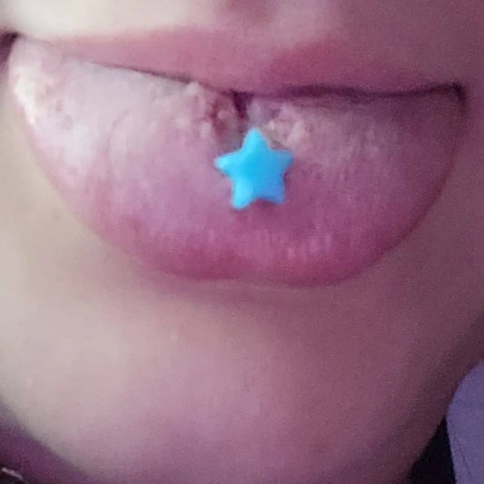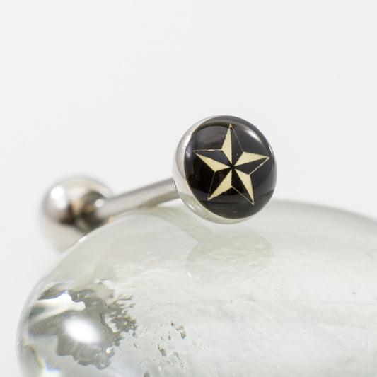 Surgical Steel Tongue Ring Straight Barbell 14 Gauge & Nautical Star