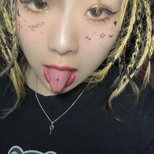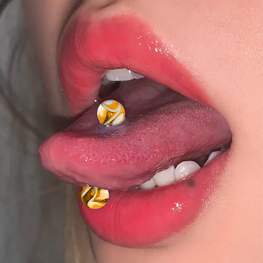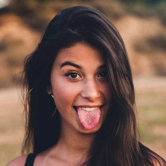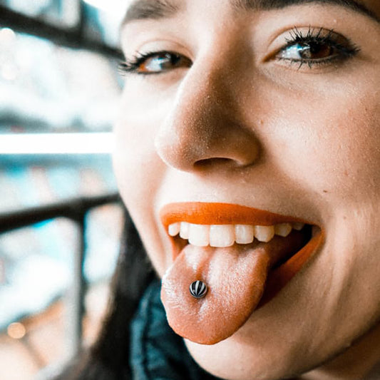 Surgical Steel Tongue Ring Straight Barbell 14 Gauge Tongue Face Logo