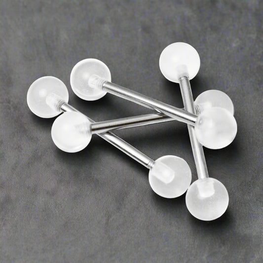 Surgical Steel Straight Barbell Tongue Ring 14 Gauge & Clear - 4 Pack