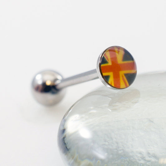 Surgical Steel Tongue Ring Straight Barbell 14 Gauge & British Flag Logo