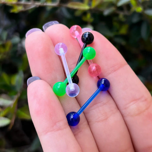 Surgical Steel Tongue Ring Straight Barbell 14 Gauge Acrylic - 7 Pack
