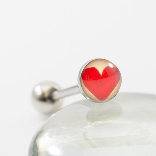 Surgical Steel Tongue Ring Straight Barbell 14 Gauge With Heart Logo