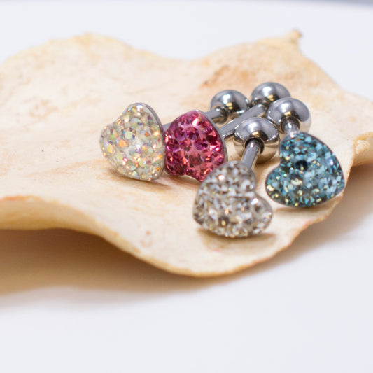 Surgical Steel Tongue Ring Barbell 14 Gauge 5/8" Epoxy Paved Gem Heart