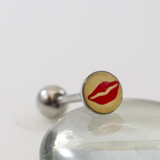 Surgical Steel Tongue Ring Straight Barbell 14 Gauge & Red Lips Logo