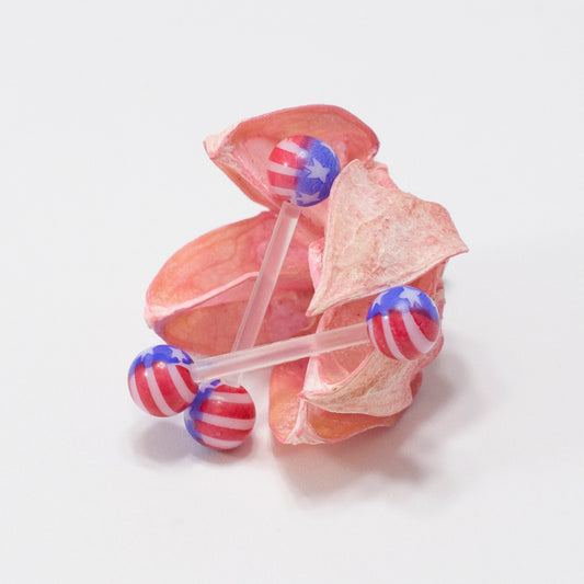 Surgical Steel Tongue Straight Barbell 14 Gauge Acrylic American Flag