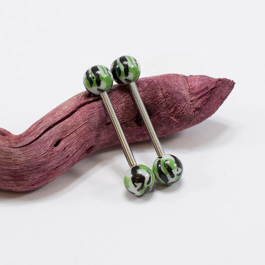 Surgical Steel Straight Barbell 14 Gauge & Acrylic Camouflage - Pair